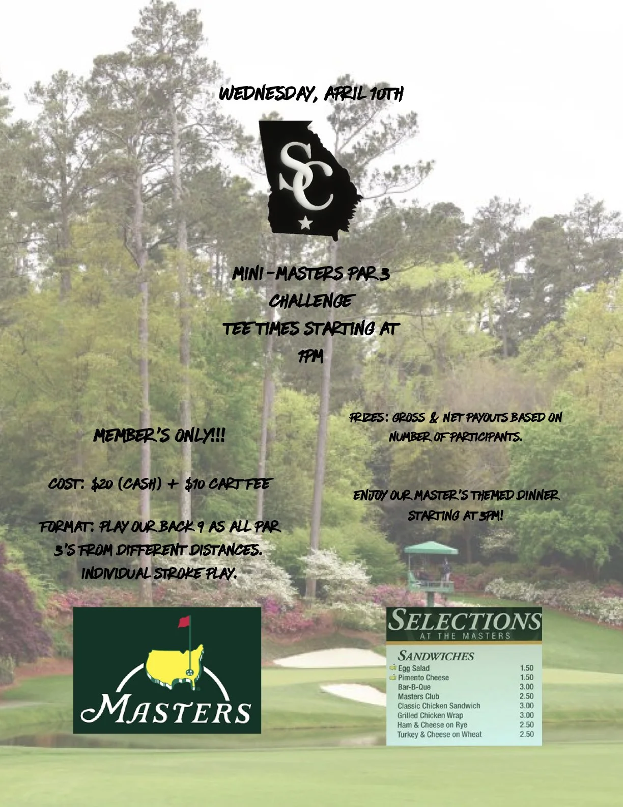 Enjoy our Master’s Themed Dinner starting at 3PM